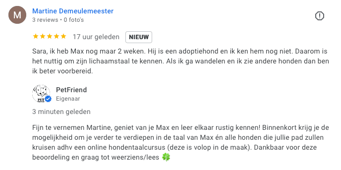 Martine is kersverse hondenouder en nam al deel aan de gratis hondentaal-week!